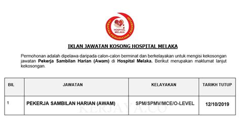 Calon berkelayakan dan memenuhi syarat-syarat yang ditetapkan untuk memohon mengisi kekosongan kerja yang diiklankan seperti di bawah. Find your desired Kerja Kosong in Rembau below. 8 April 2021 To assist the Operations Manager to ensure smooth daily outlet operations so that the Operational Strategy is executed with success with key performance.